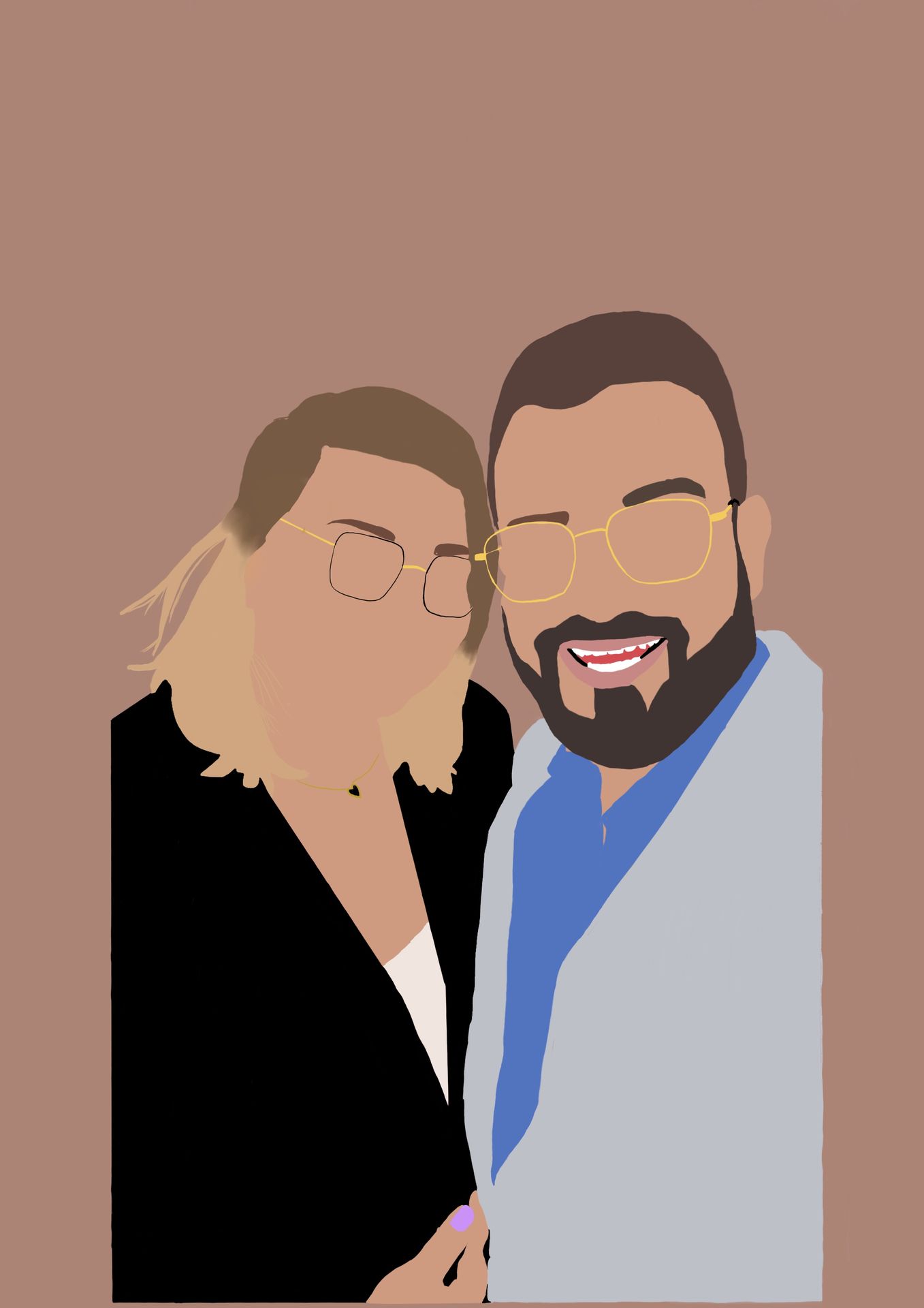 A partir d'une photo, je crée des illustrations minimalistes avec juste ce qu'il faut pour reconnaitre les personnes sur la photo.